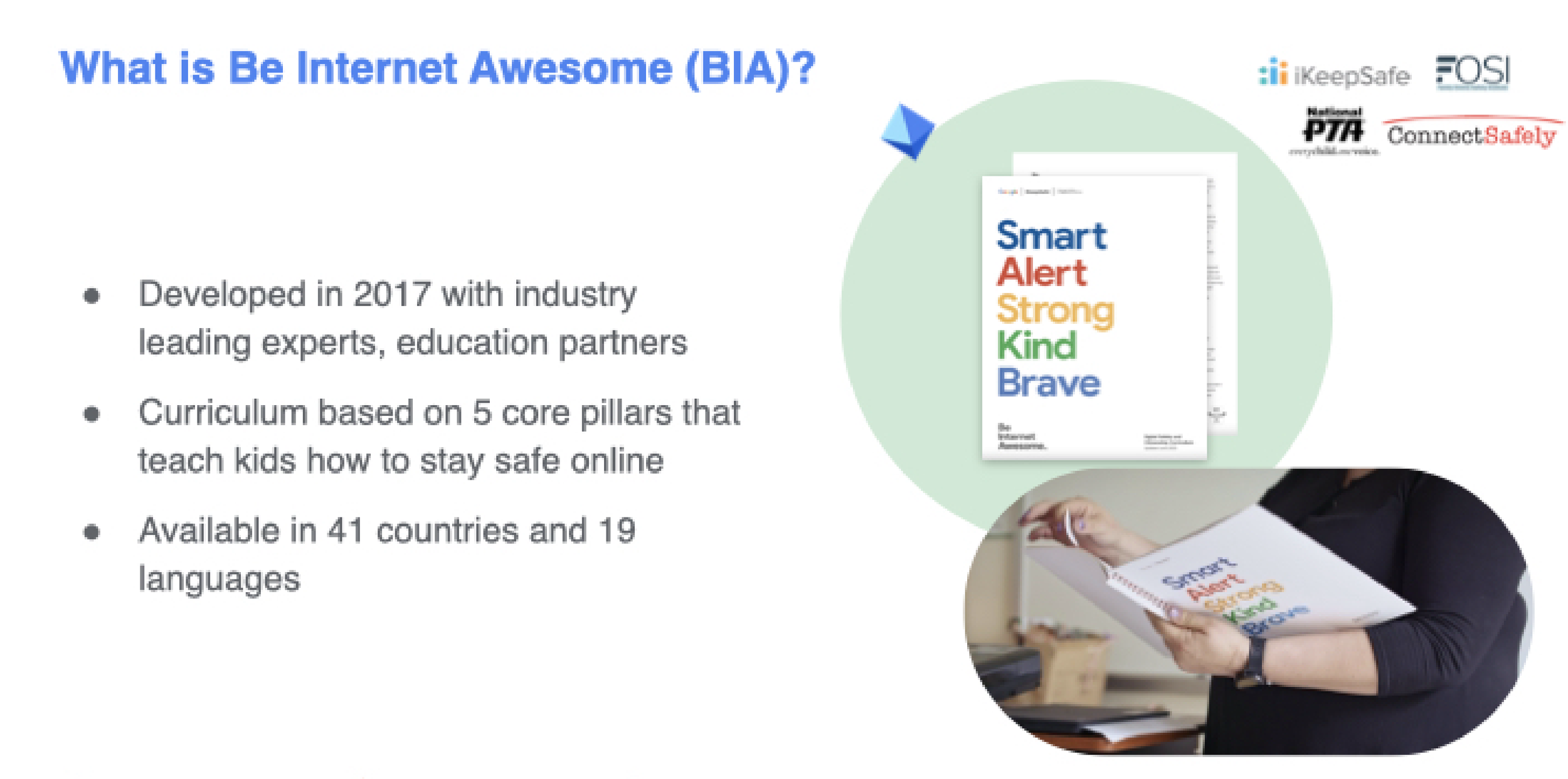 Be Internet Awesome was developed in 2017 with industry leading experts and education partners and is built to be a resource that organizes digital citizenship into five areas to make digital safety an easy family conversation.